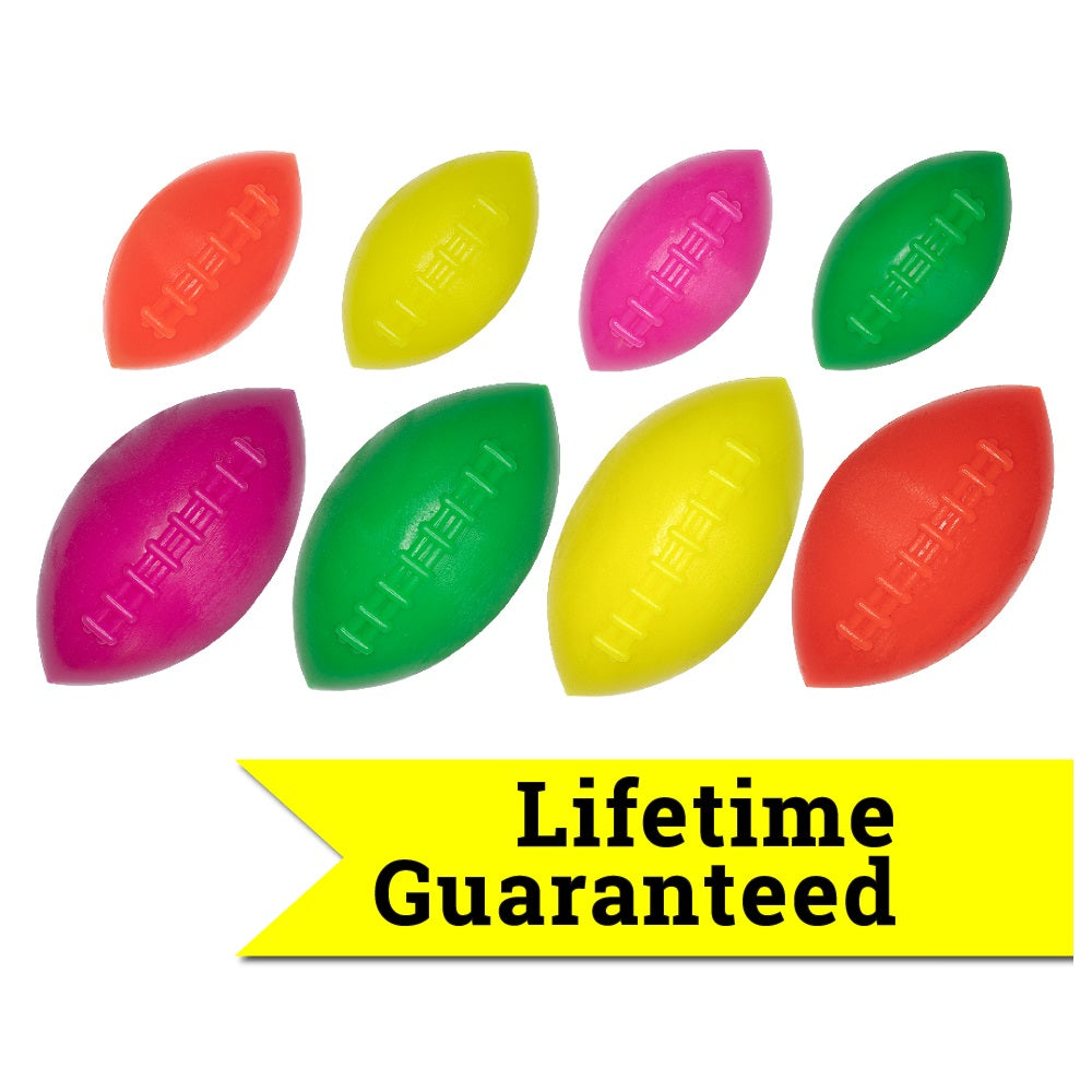 The Football comes in 2 sizes – Regular and XL, and in an assortment of high-visibility Neon colours – so no more toys lost in the grass or water. Go team!