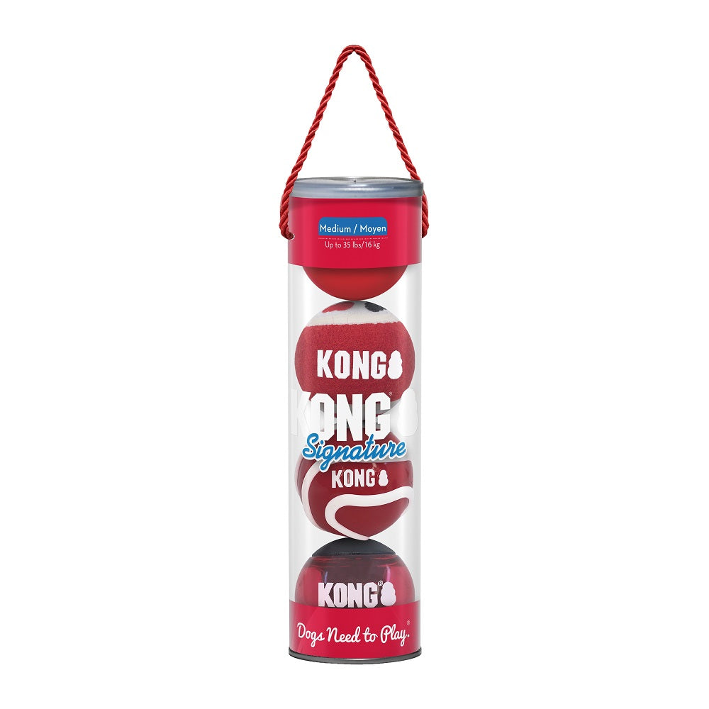 KONG Signature Ball Multi Packs deliver different flavours of fetch, each with a unique texture for high-flying variety to keep pups playing. These super-sturdy, ultra-bouncy balls offer long-lasting action, satisfying dogs’ chasing and retrieving instincts with tons of healthy exercise. Some squeak, some do not. Special felt on KONG Signature Sport Ball is gentler on teeth and gums than regular tennis balls for safer play.